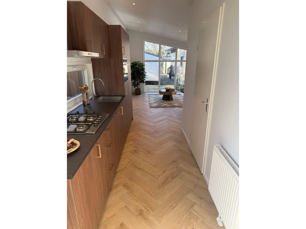 - Click-PVC vloer in visgraatmotief.