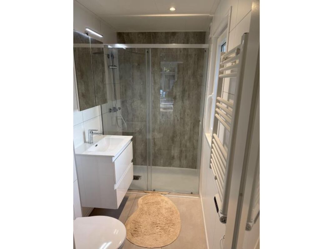 - Complete badkamer met onder andere een tegelvloer, Fibo Trespo wandpanelen, douche van 1.40 x 0.80 met regendouche, hangtoilet met plateau en luxe badmeubel.