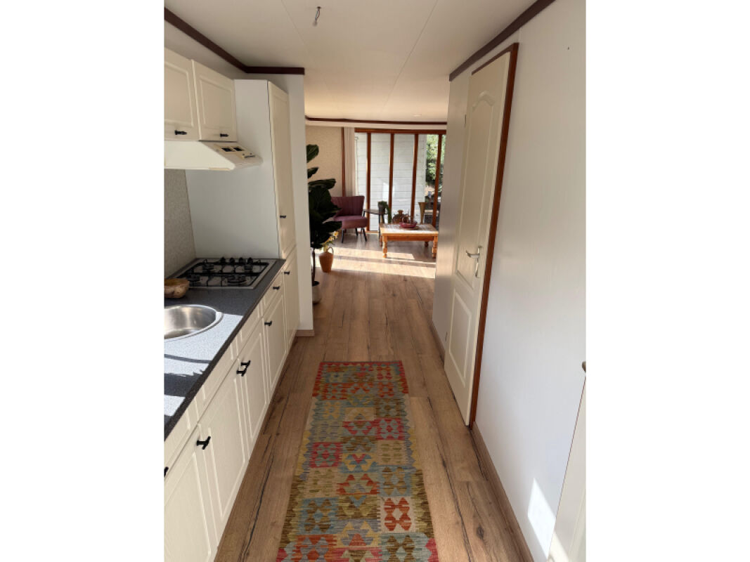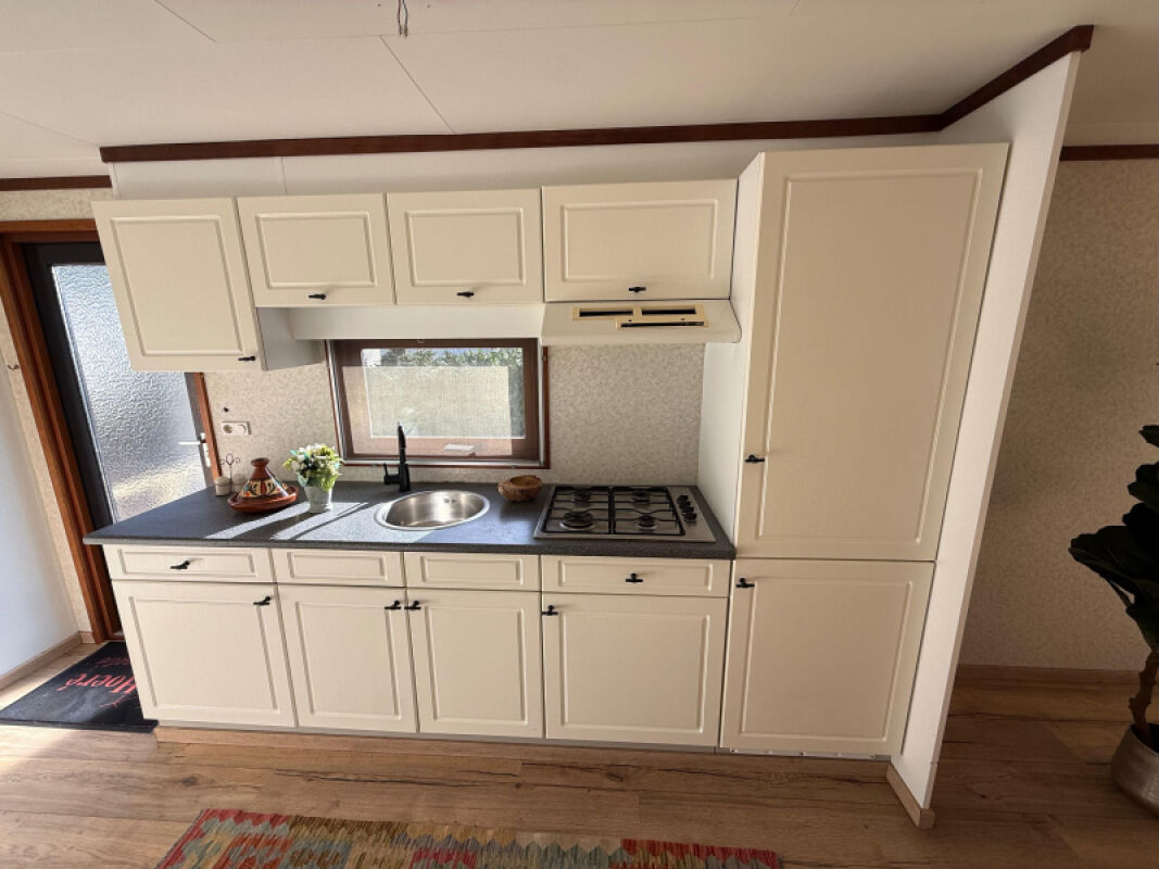 - Complete keuken met onder andere een koelvriescombinatie, kookplaat, spoelbak en afzuigkap.