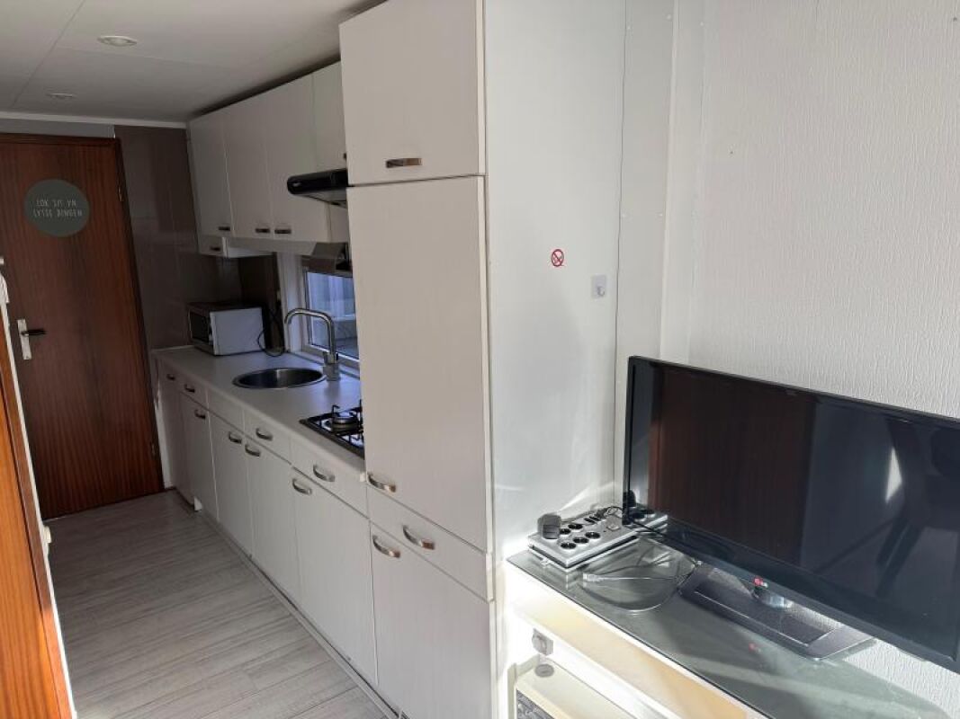 - Complete keuken met onder andere een koelkast, kookplaat, spoelbak en afzuigkap.