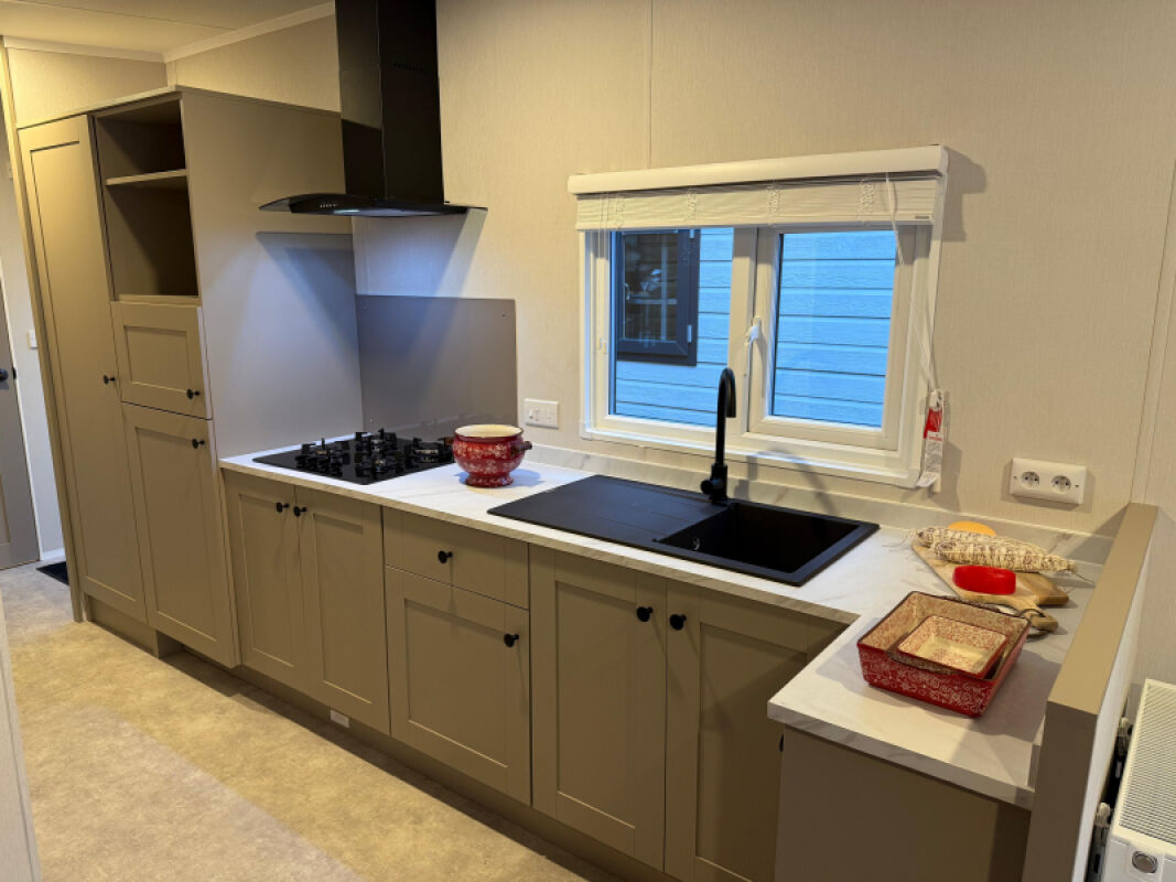 Deze gloednieuwe Shelvy Lessenaar 1000 staat te koop op een bijzonder mooi plekje op Camping de Rimboe in Lunteren.
